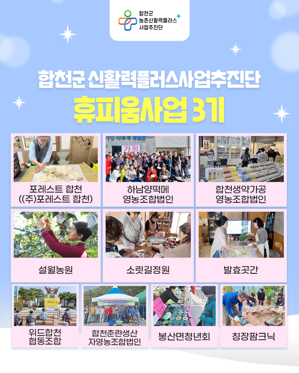 합천군농촌신활력플러스사업 액션그룹 소개(1)-주민참여형 휴피움사업(30개 액션그룹)